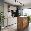 Cocina modular de 1.80 inspirada en la elegancia y esbeltez de Luxemburgo, diseñada en colores elegantes, contrastes modernos, con la fuerza y sofisticación del acero y el toque de elegancia natural de la madera.