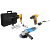 El Furius Combo es un conjunto de herramientas eléctricas diseñado para el uso profesional, que incluye un rotomartillo SDS Plus, un taladro inalámbrico y una minipulidora. Este combo es ideal para realizar trabajos de perforación, instalación y corte en diversos materiales, garantizando un alto rendimiento y durabilidad en cada tarea.