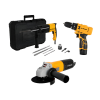 Este combo es ideal para trabajos de perforación en ladrillo, bloque y concreto, así como para perforaciones en metal y madera. El taladro es perfecto para la instalación y desensamble de estructuras livianas y muebles, mientras que la minipulidora es adecuada para cortes y acabados en metal y otros materiales.