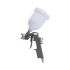 - Pistola de pintura: Capacidad de tanque: 0,6 L, Presión de trabajo: 3 Bar, Peso: 0,44 kg.