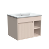 Descripción: Este mueble de baño incluye un lavamanos integrado, ofreciendo una solución compacta y moderna para espacios reducidos. Su diseño en color greige con acabado texturizado aporta sofisticación y combina con diversos estilos de decoración.